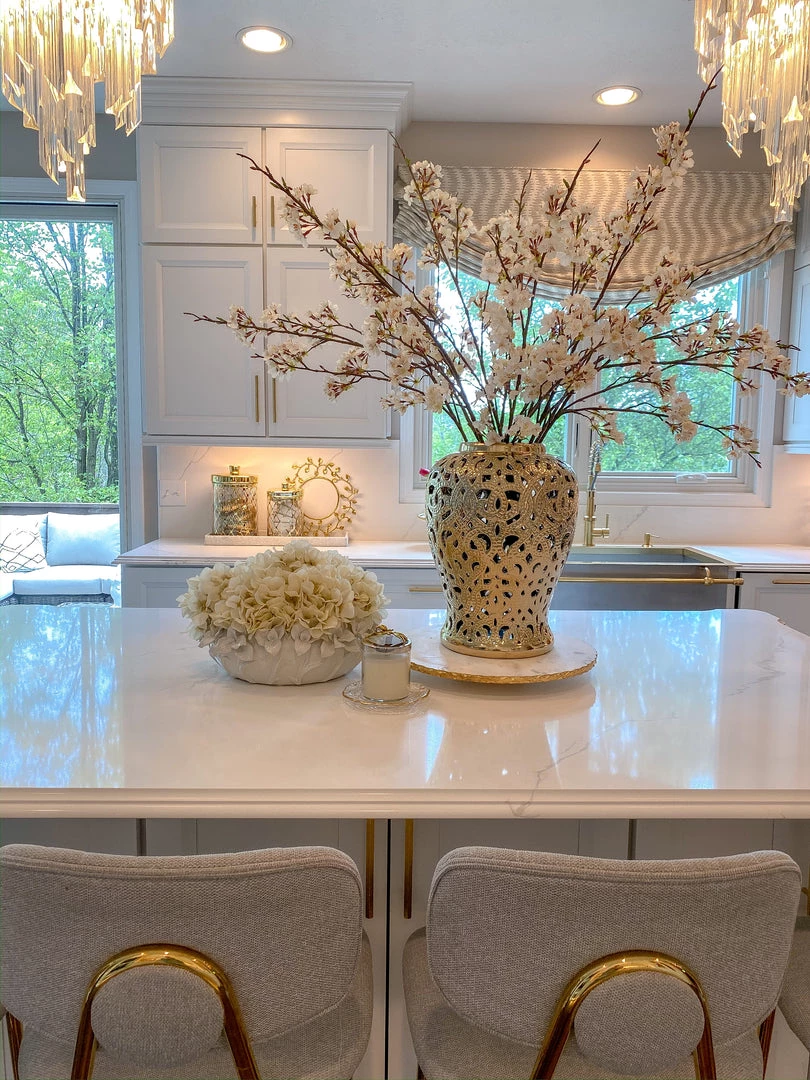 Inspire Me! Home Decor White Ceramic Vase With Stunning Gold Floral Detailed Center