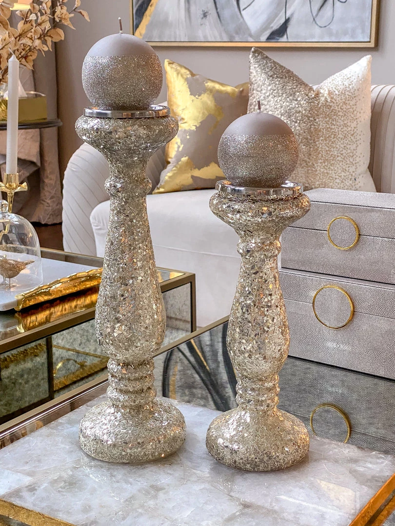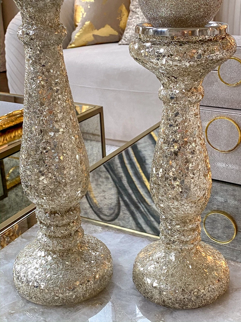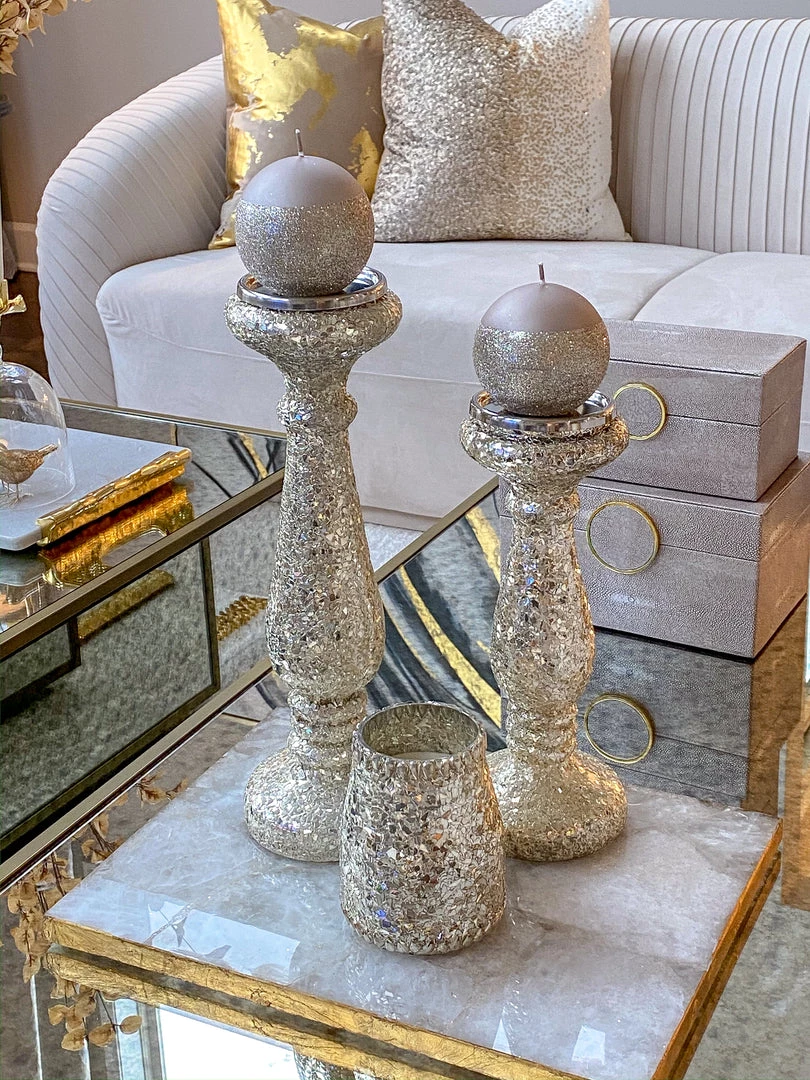 Description: This stunning candle holder catches all surrounding light and reflects it back for a show stopping display.
