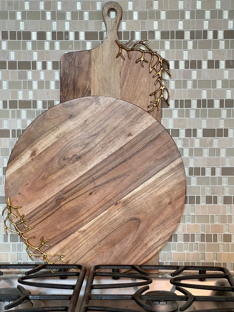 Description: This beautiful Charcuterie Board with its gold textured design will add a unique elegance to your serving display! Stand it up and layer it with other boards!