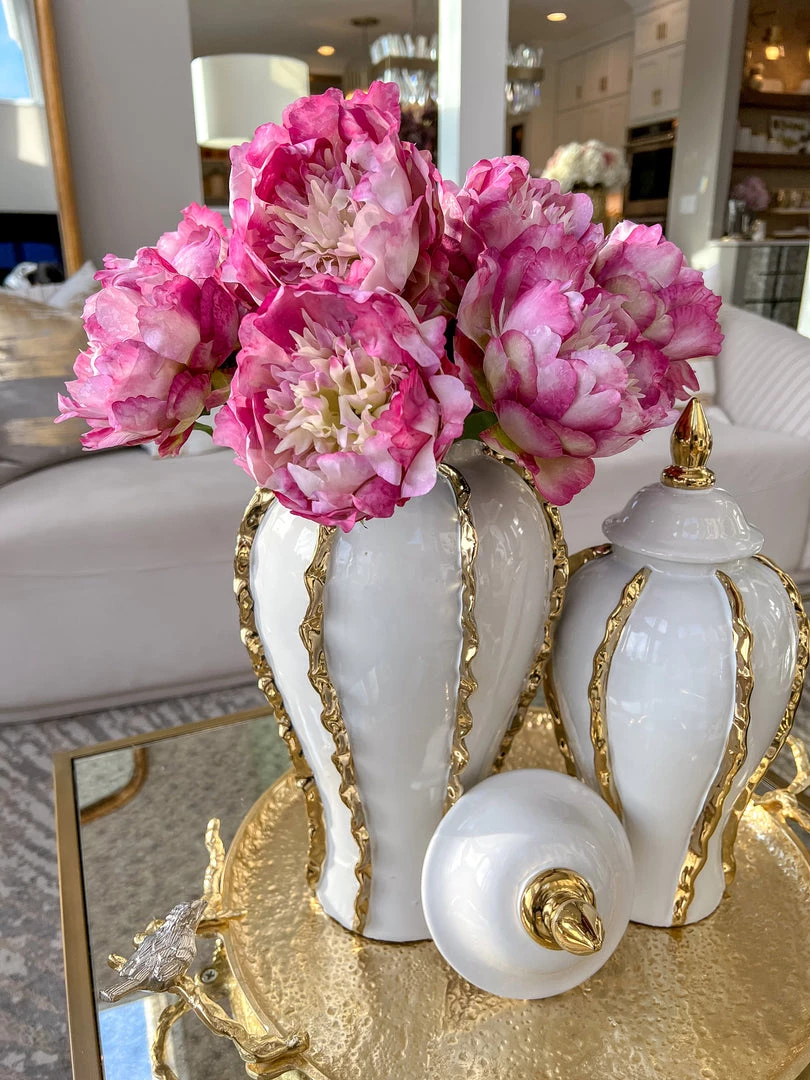 Inspire Me! Home Decor White Ceramic Jar With Elegant Gold Details (2 Sizes)
