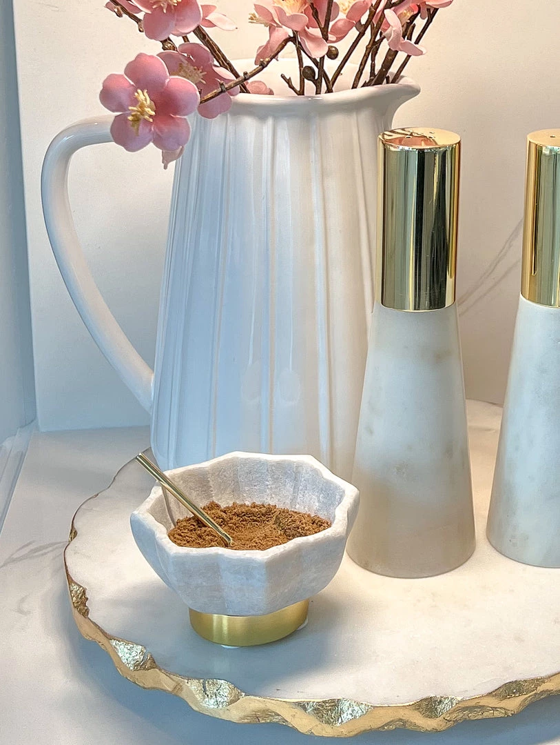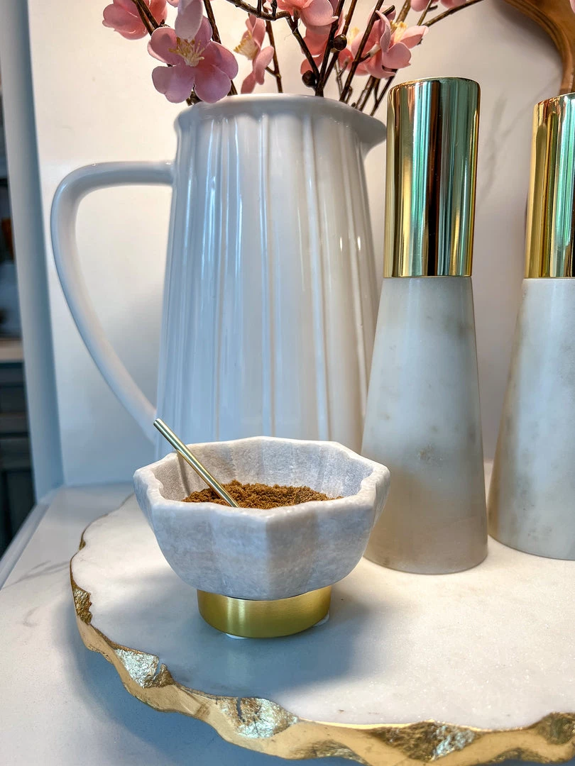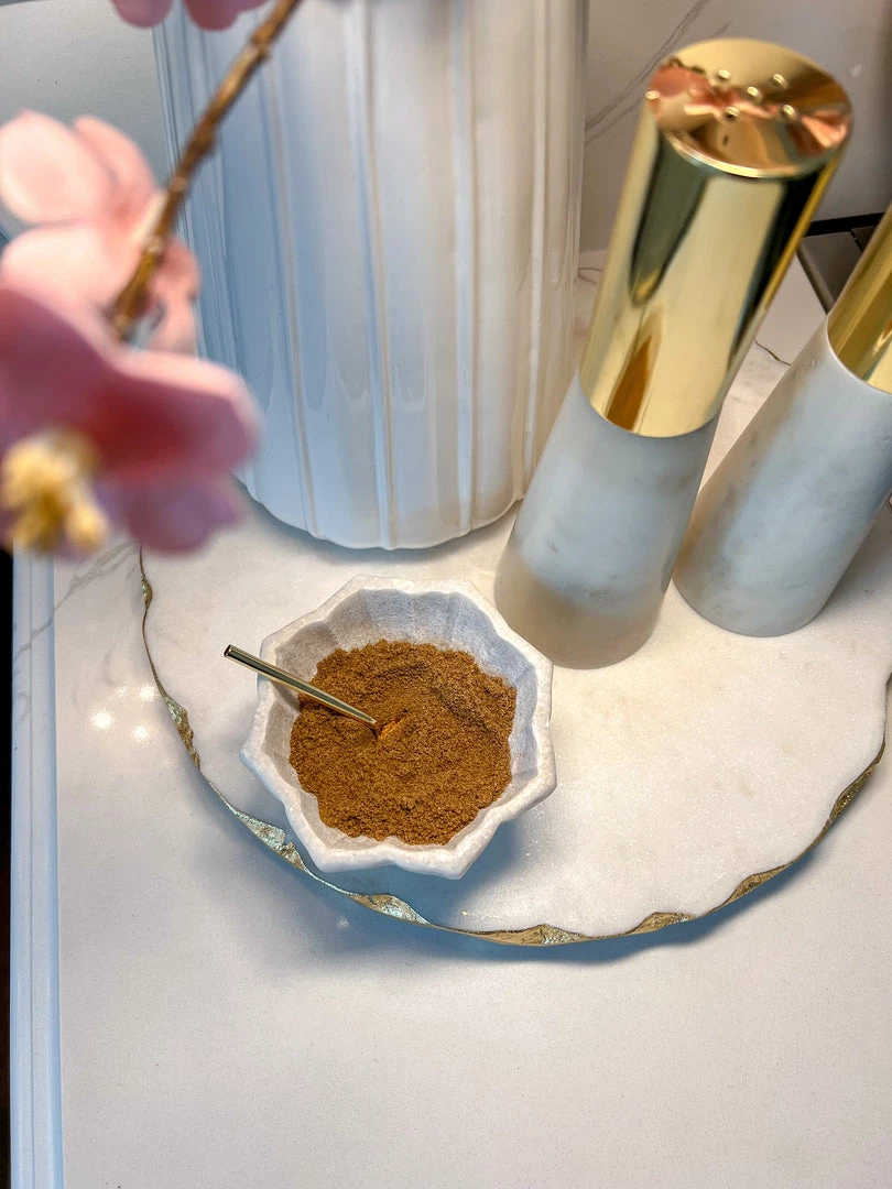 Description: This stunning lotus marble bowl is a stylish piece to add to your serving decor! Perfect for your favorite herbs and spices!