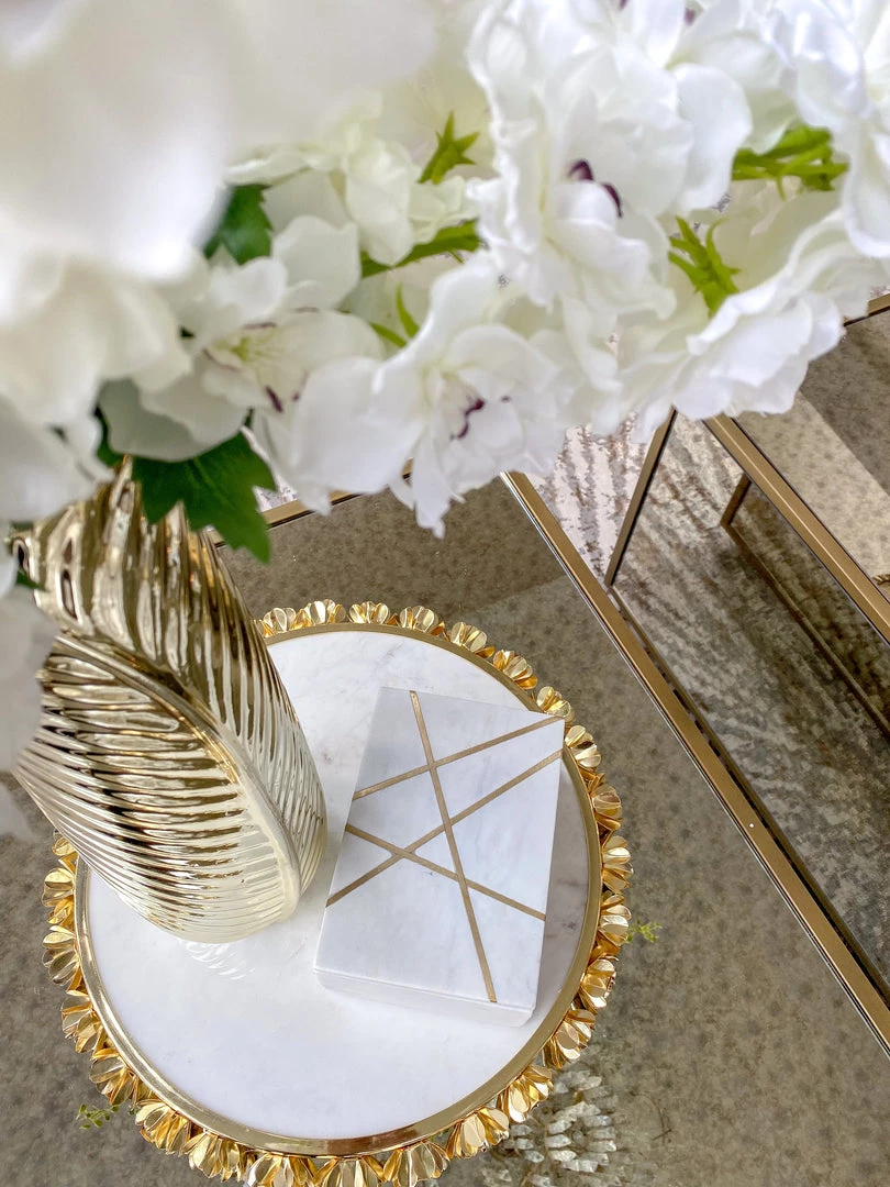 Inspire Me! Home Decor Round Marble Tray With Gold Edge And Metal Details