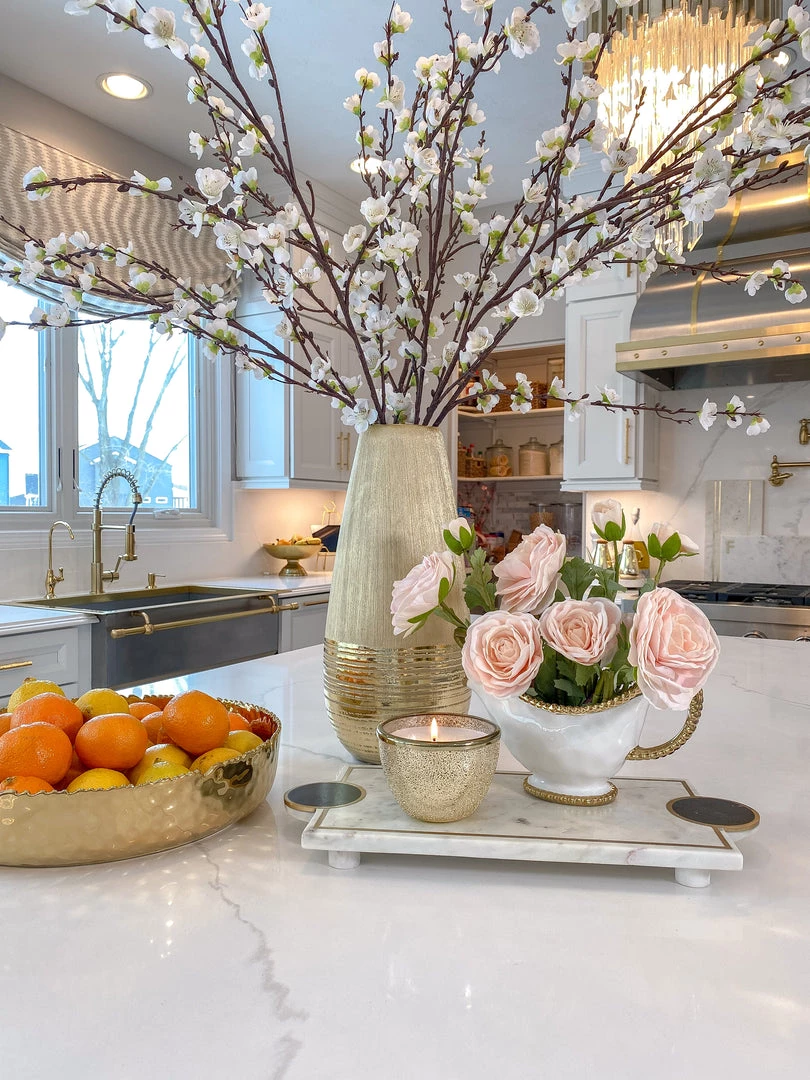 Inspire Me! Home Decor Large Rectangular Marble Tray With Cherry Blossom Details