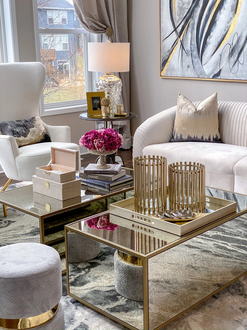 This box set is beautifully patterned with a soft fabric overlay. The gold medallion on the front ties these back to all of your gold decor. Can be styled together, or separately, and they are great for storing things like remotes and other items.