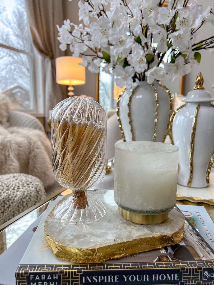 This is a great addition to my home decor. The agate trivet is not only practical but also a piece of art. The gold detail is exquisite.
