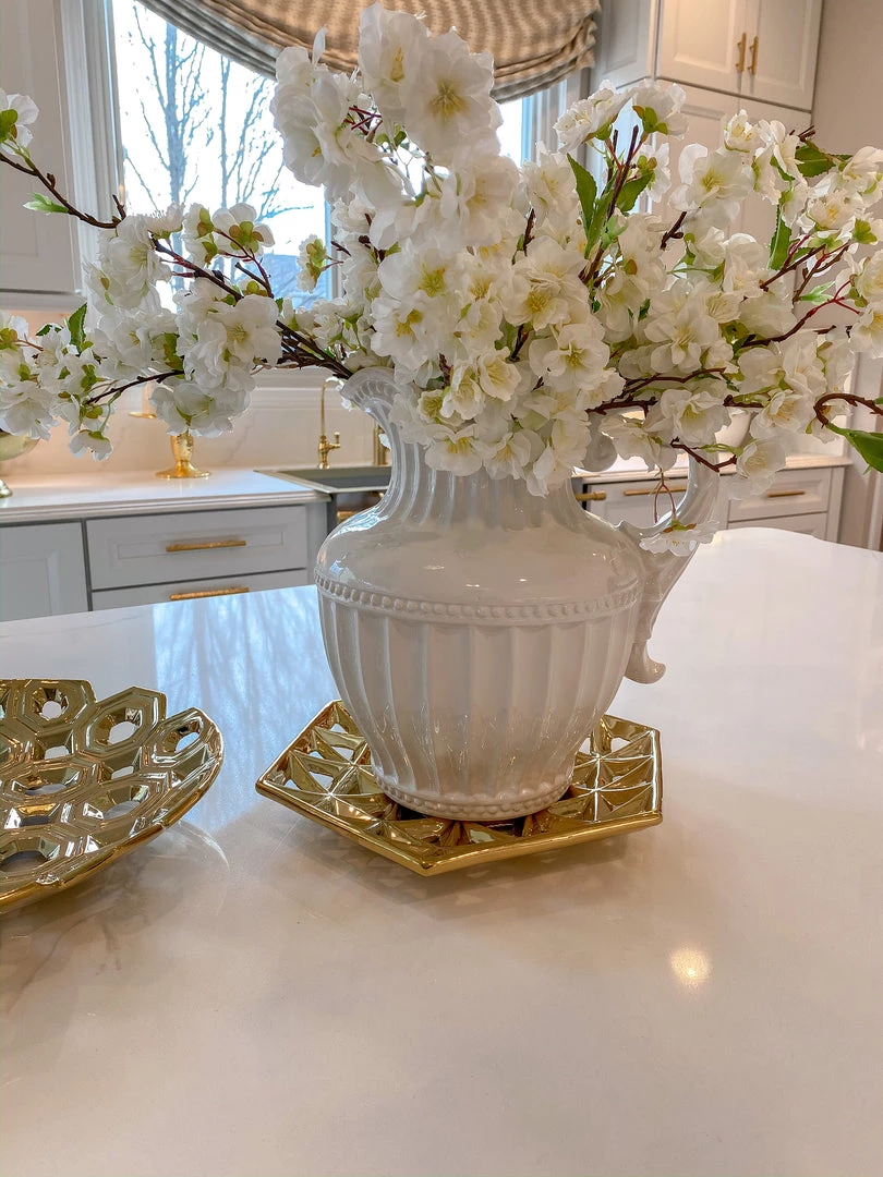 Description: Enjoy classic luxury with this stunning pitcher! The stark white color and the traditional design will put you back to simpler and more beautiful times.