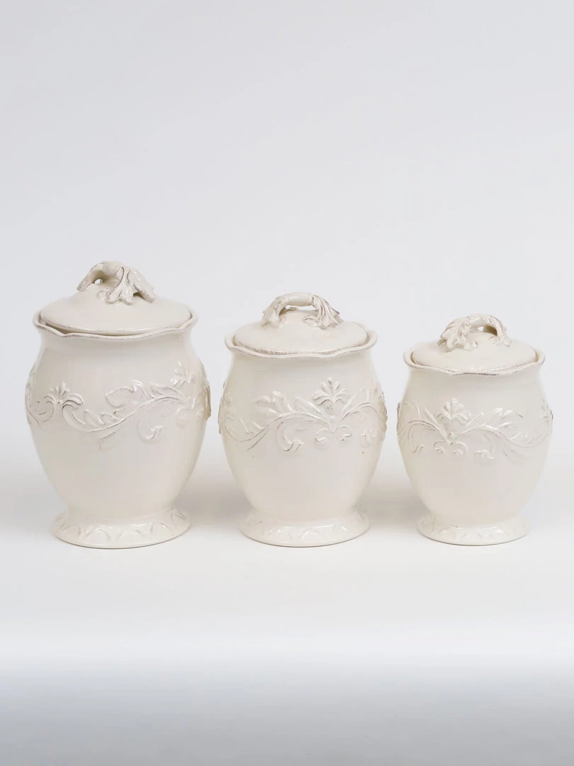 Description: This beautiful set of white canisters is perfect for your home! Each canister is oversized for ample storage, and also features an air-tight lid to keep snacks fresh longer!