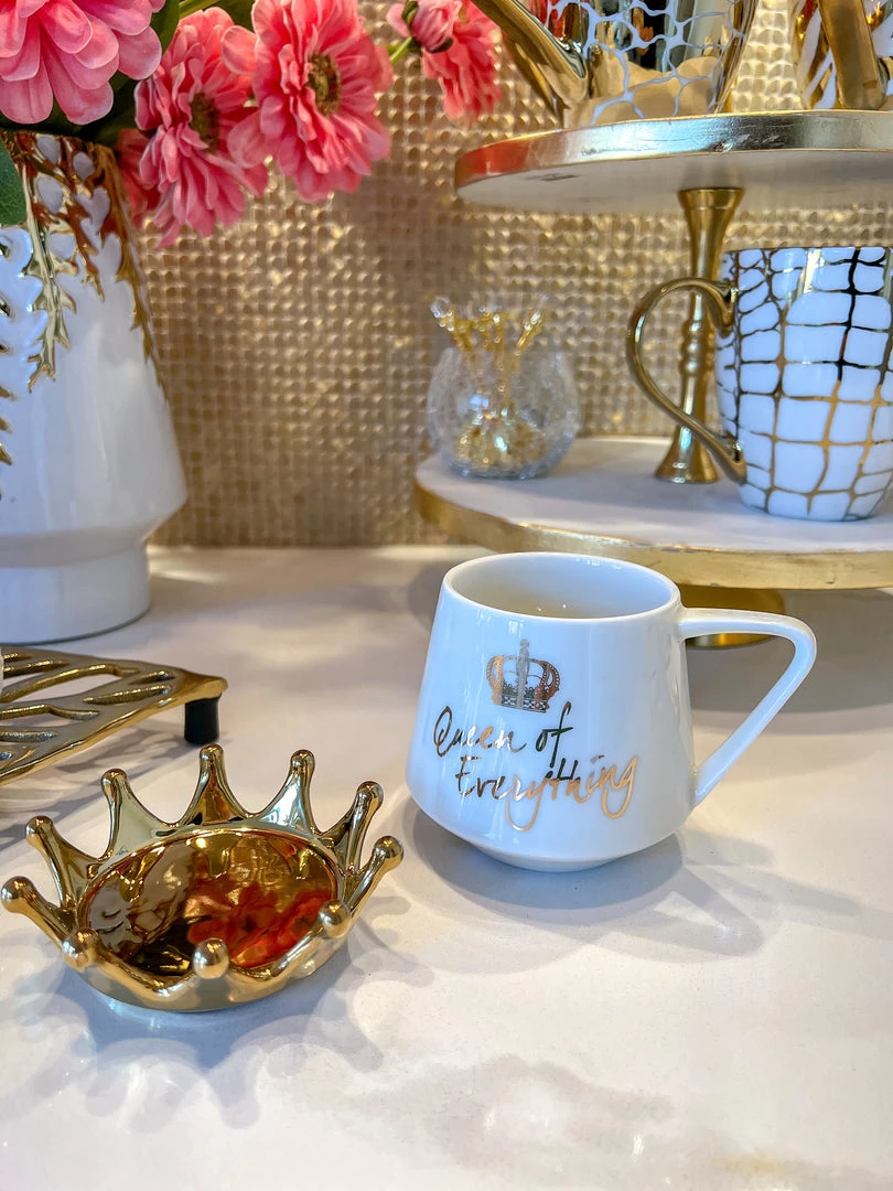 Description: This is the perfect gift for Mother’s Day! Get this gorgeous cream and gold mug for your Queen!