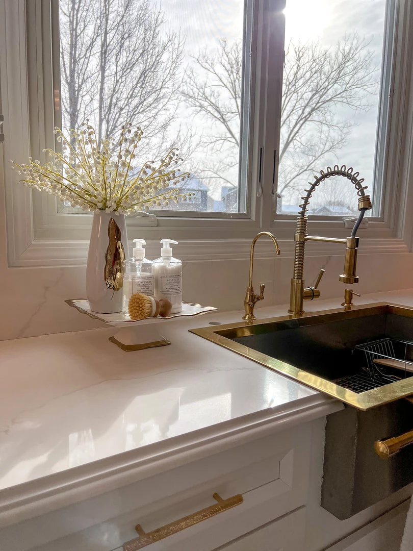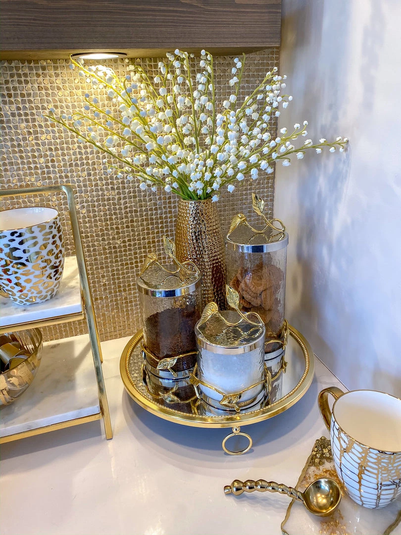 Inspire Me! Home Decor Round Marble Tray With Gold Edge And Metal Details