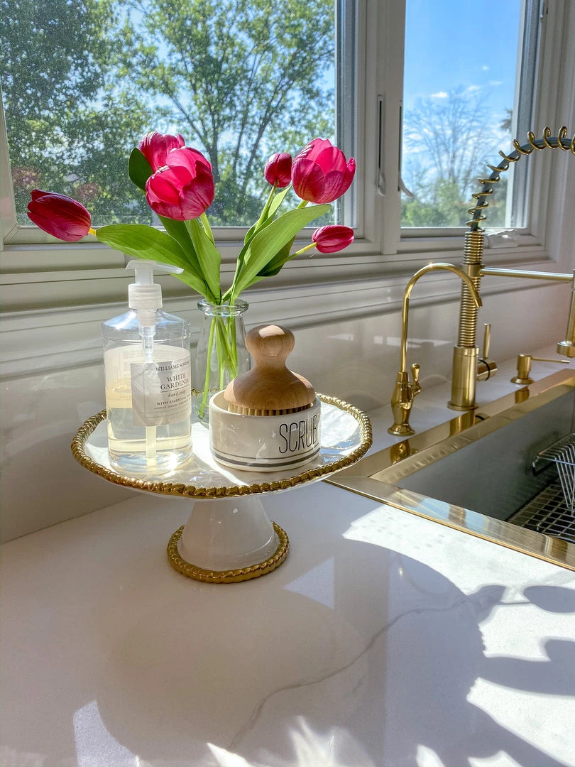 Inspire Me! Home Decor Round Marble Tray With Gold Edge And Metal Details