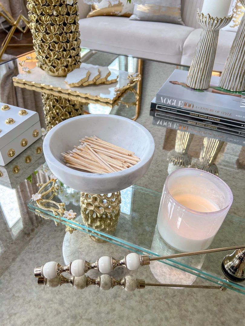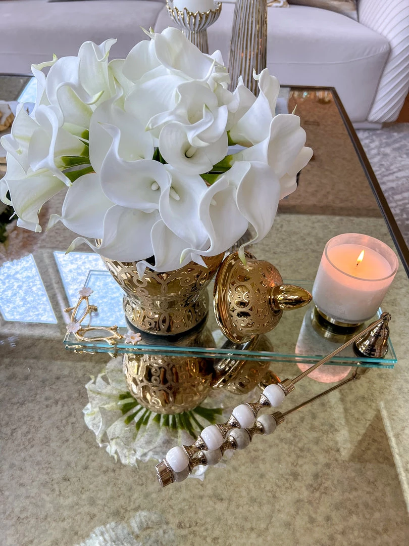 Description: This beautiful rectangular glass tray has stunning gold details with a cherry blossom design!