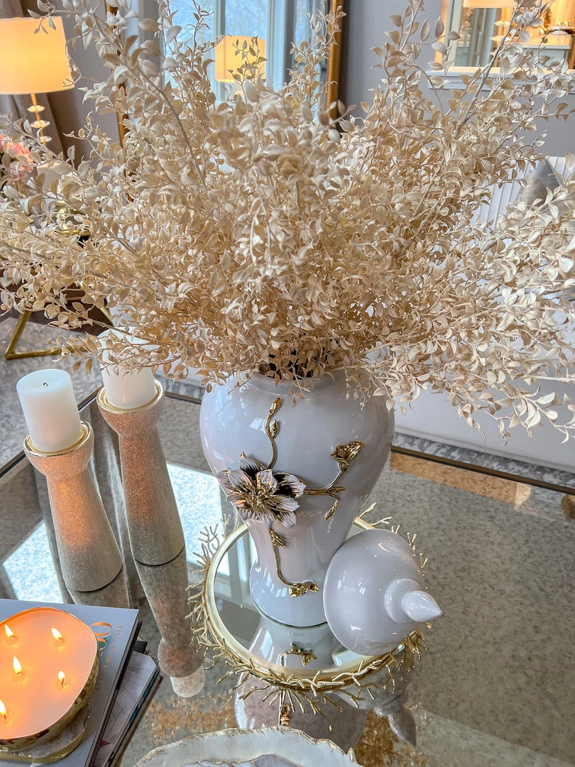 Inspire Me! Home Decor White Ceramic Candle Holder With Gold Elegant Details (2 Sizes)