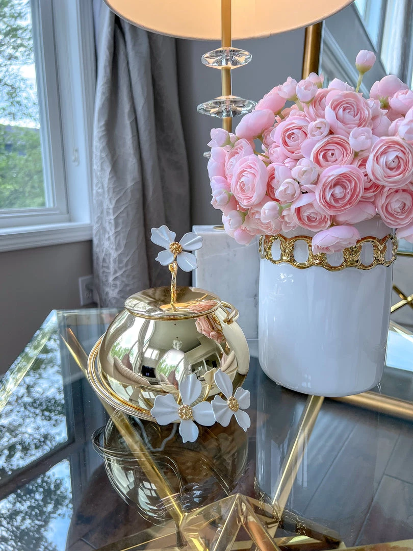 I’m in love with this dish! The white jeweled flower details are so pretty, and it’s the perfect size for small items. The cover is a thoughtful addition, making it practical as well as decorative. It’s a must-have for anyone who loves chic home decor.