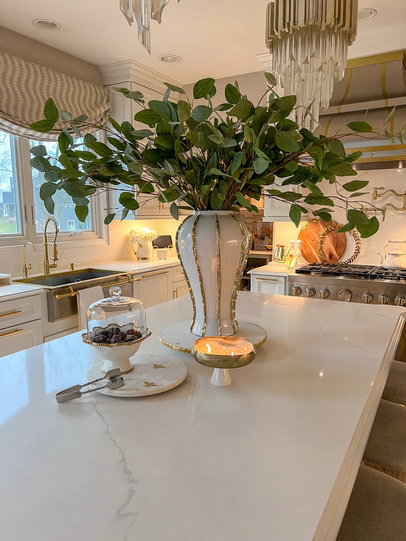 Inspire Me! Home Decor White Ceramic Vase With Stunning Gold Floral Detailed Center