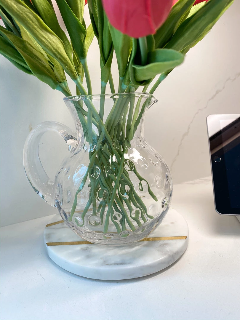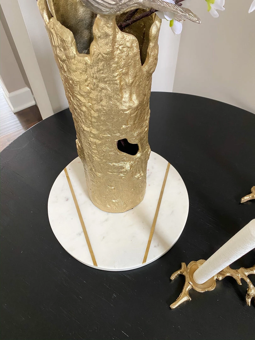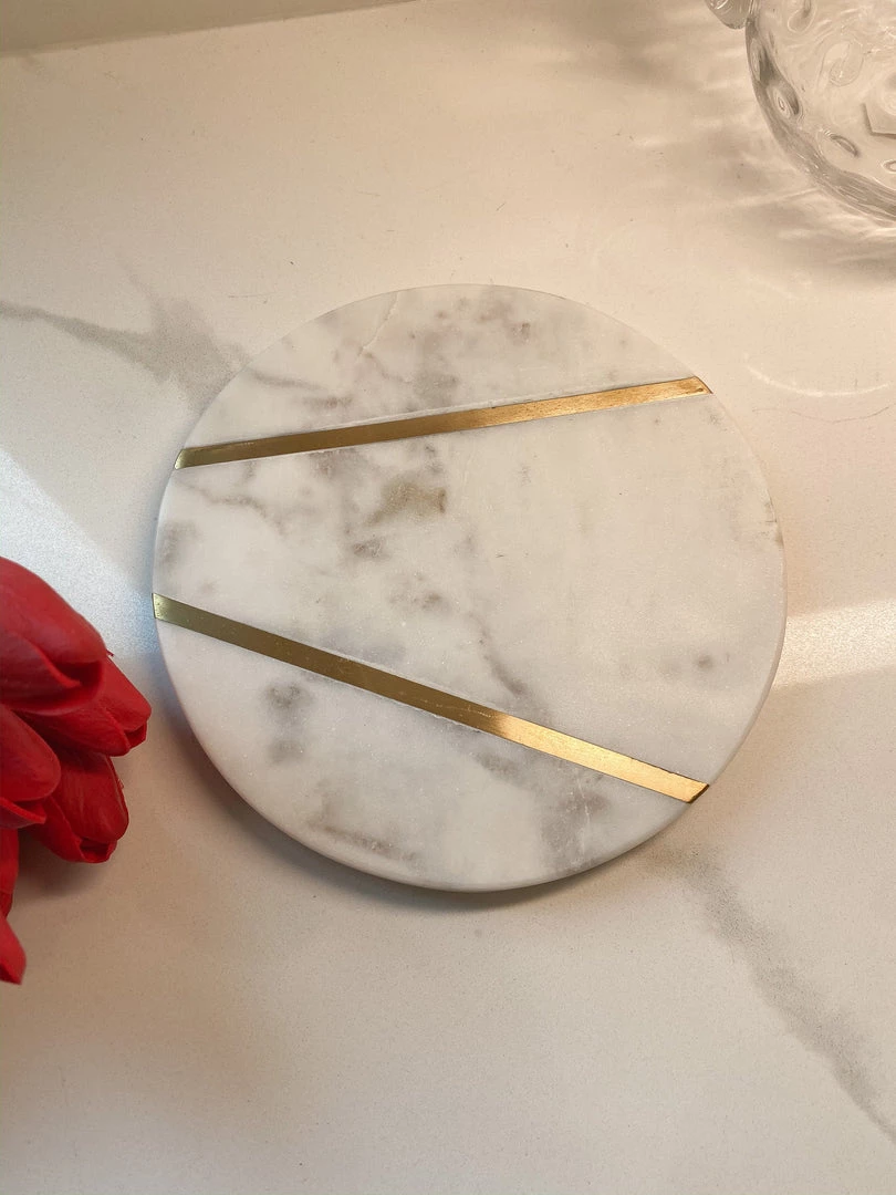 Inspire Me! Home Decor Round Marble Tray With Gold Edge And Metal Details