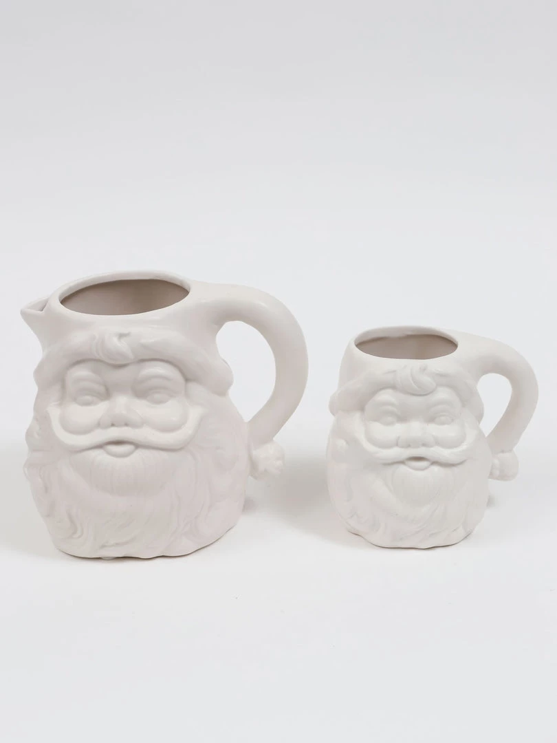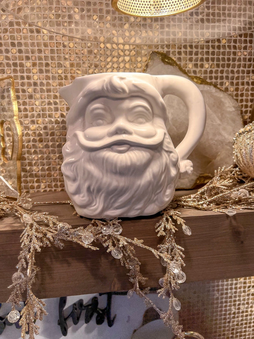 Description: These white Santa mugs are a holiday need. Can be used to drink your favorite winter drink or use to put stems in!
