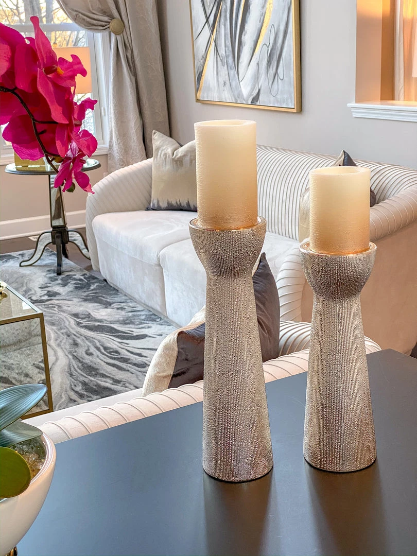 Description: This set of 2 ceramic candle holders features a gorgeous beaded finish.