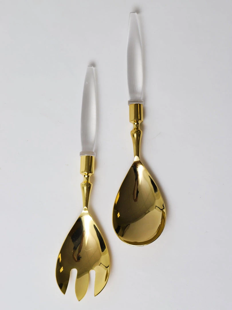 Description: These gold salad servers style well with any serveware collection! The stunning gold design with the acrylic handles provide a simple and elegant look for your dinner parties!