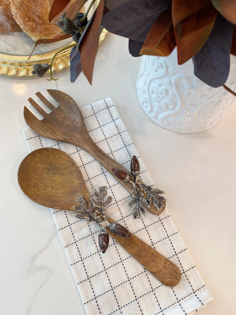 Description: These stunning servers are perfect for your fall family gatherings! The delicate acorn detail is an elegant accent on the mango wood server.
