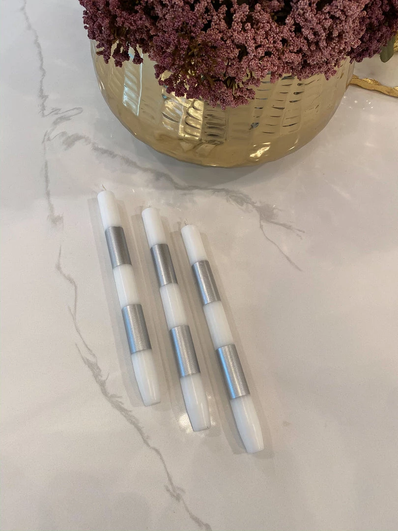 These metallic band candles are a must-have for this holiday season! They are a stunning fit for any candle stick holder and the silver finish ties back to your metallic decor.