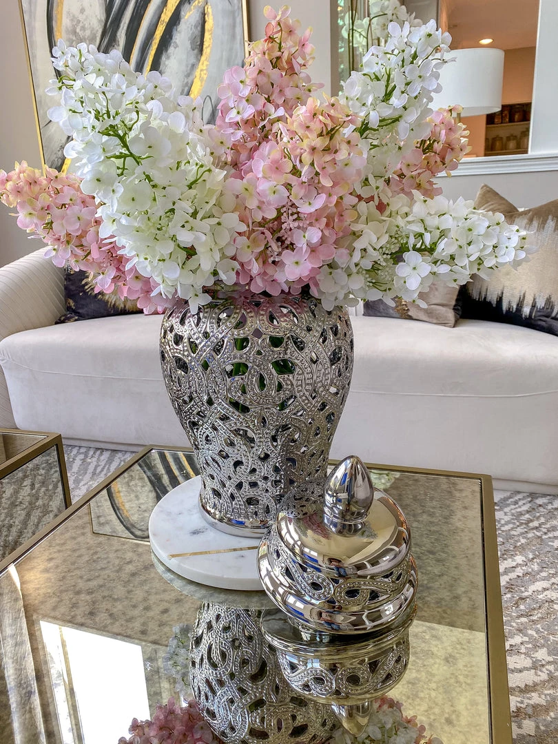 Description: This silver cut-out ceramic ginger jar is perfect for any decor!