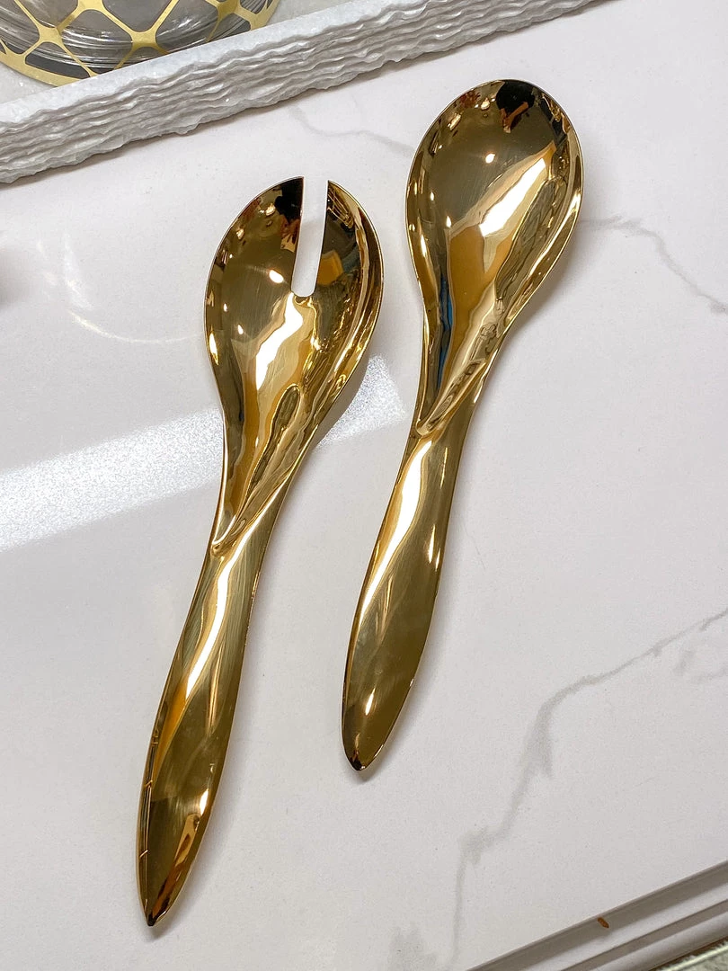 Description: These stylish gold metal serves are a great staple piece for any serving collection! The desing is simple and sleek and will match any existing set, but still stand out at your dinner parties!