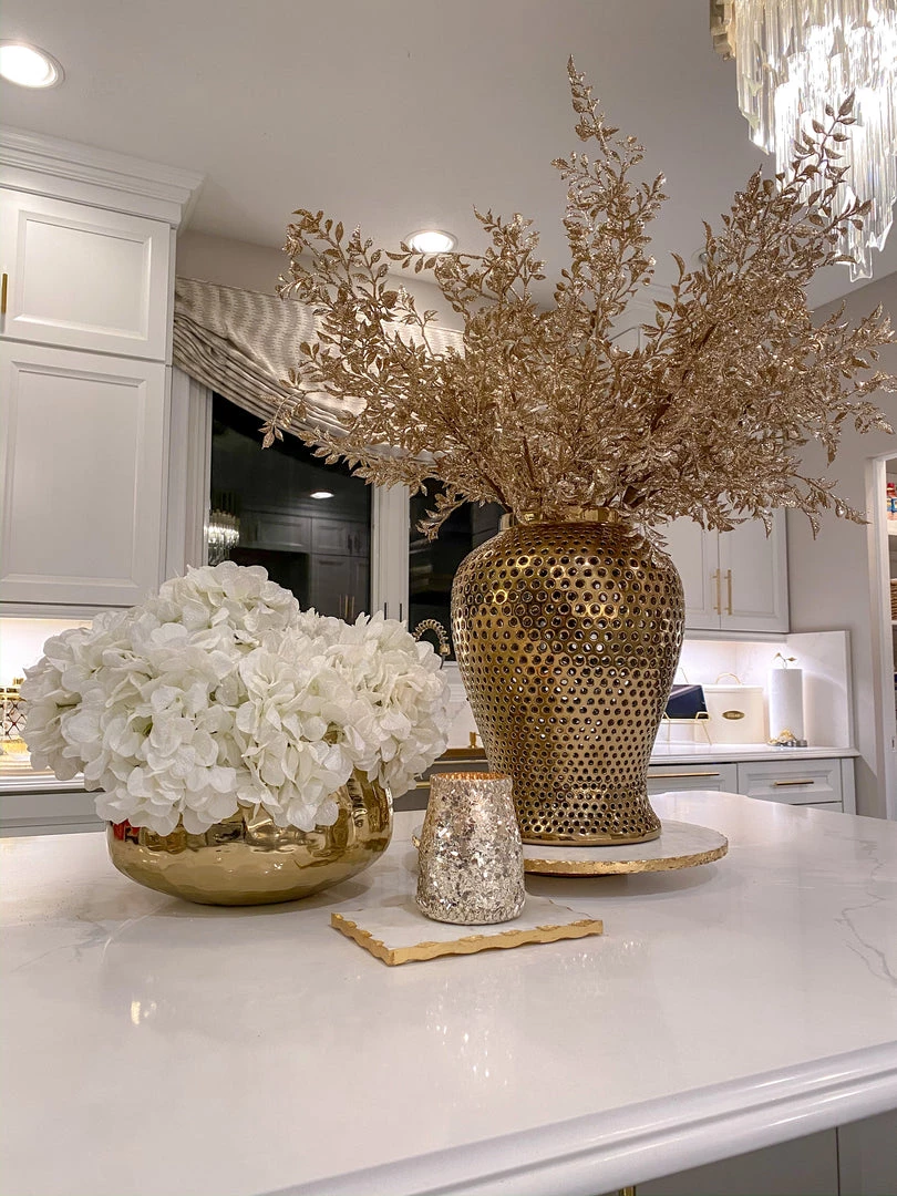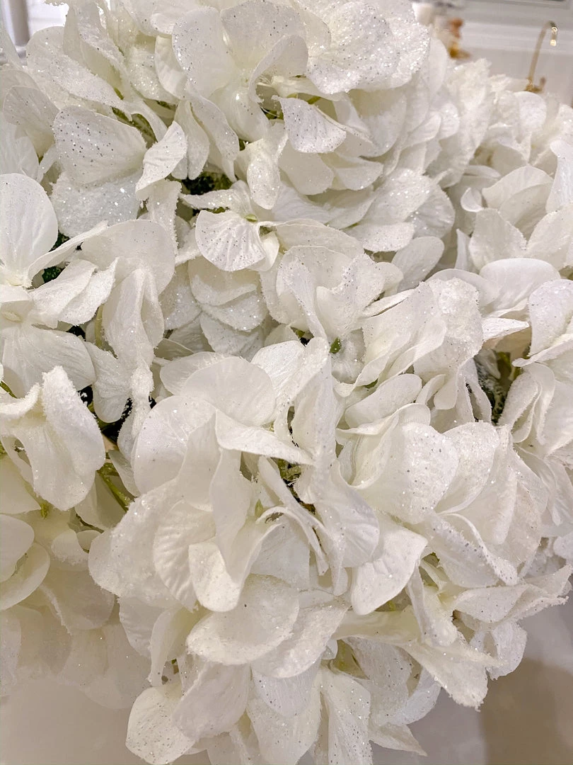 This snowy white hydrangea stem is a beautiful holiday take on a classic floral stem! Style in your favorite bowl for vase!