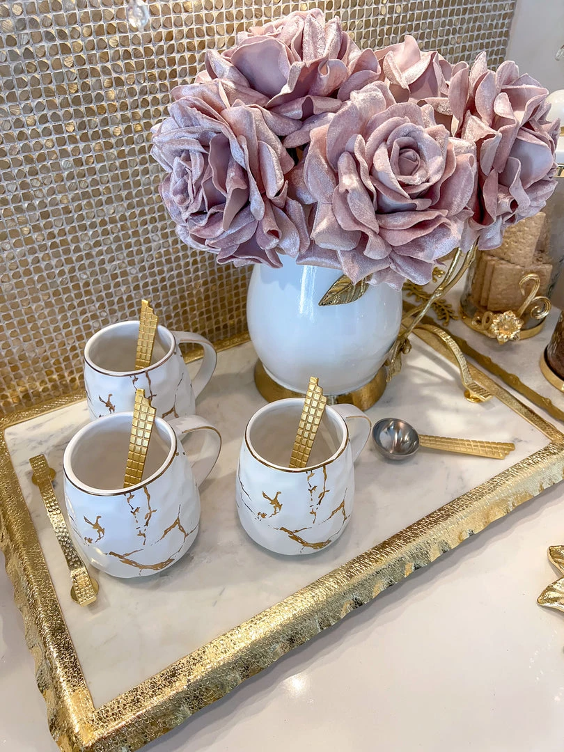 Inspire Me! Home Decor Round Marble Tray With Gold Edge And Metal Details