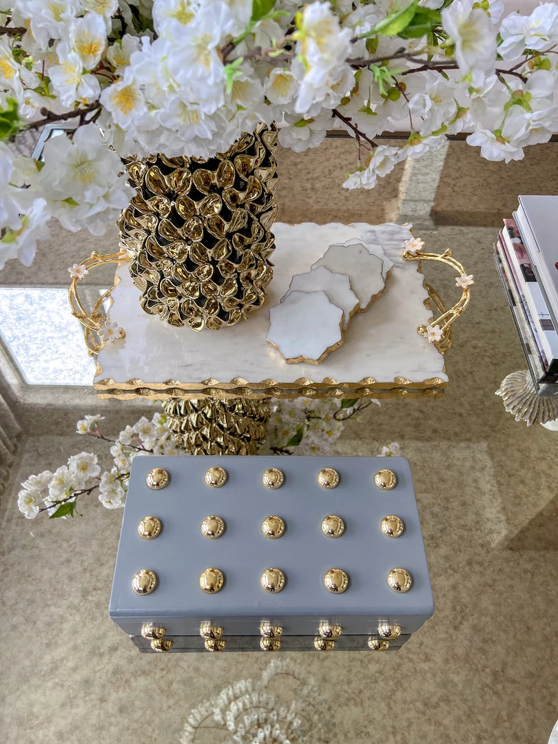 Inspire Me! Home Decor Rectangular Marble Tray With Cherry Blossom Details