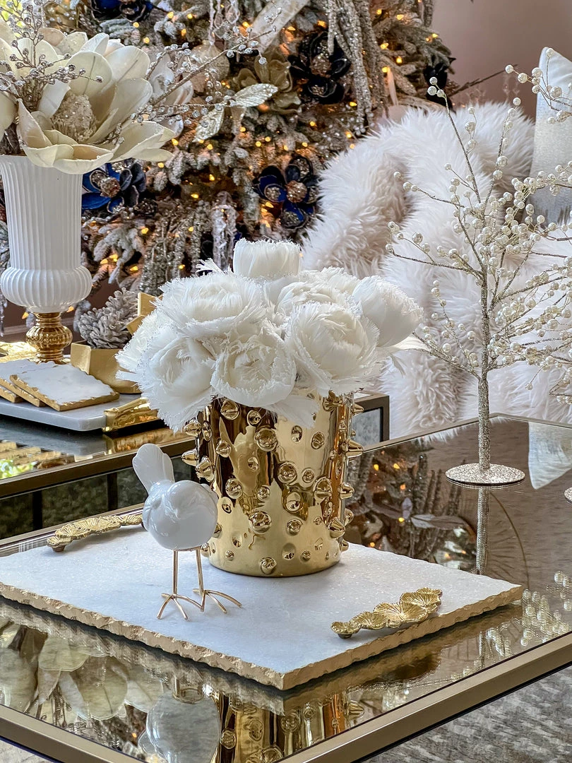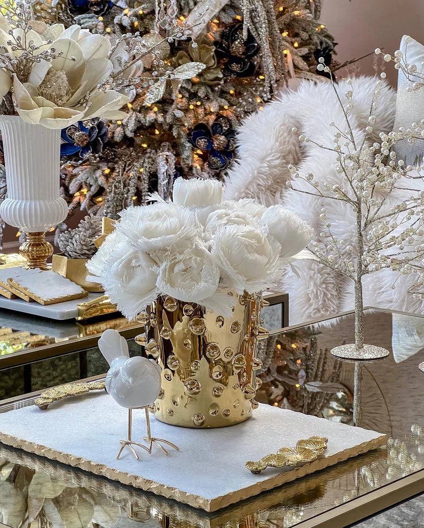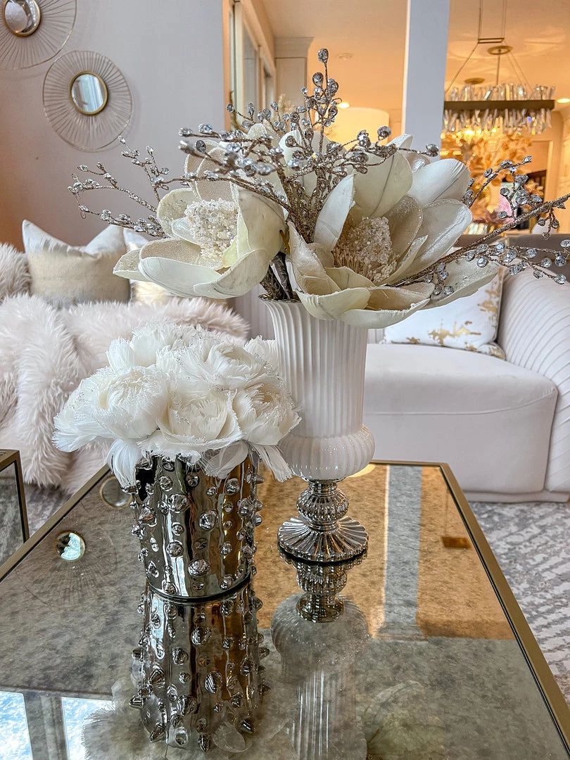 Description: This small beaded vase is a must- have! The design is perfect for all your real touch florals to change up the texture in your room!