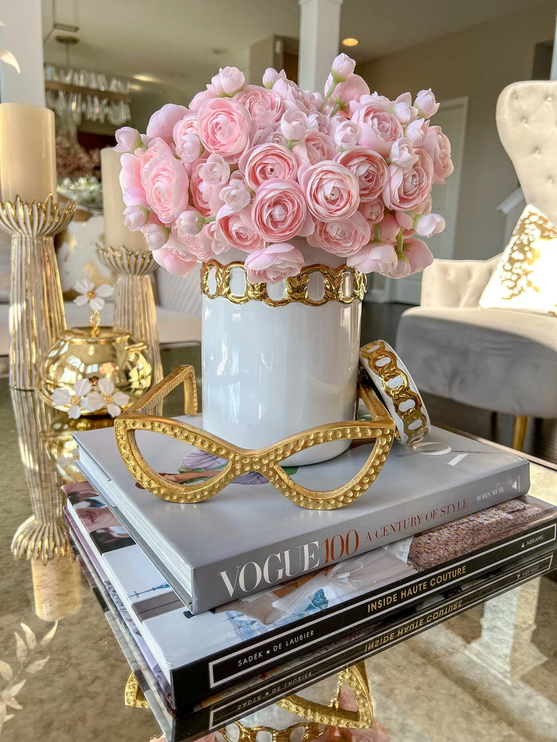 Description: This textured cateye glass sculpture is a great addition to any shelf, bookcase, or coffee table! With the choice of silver or gold, these glasses are very versatile and are such a cute piece!