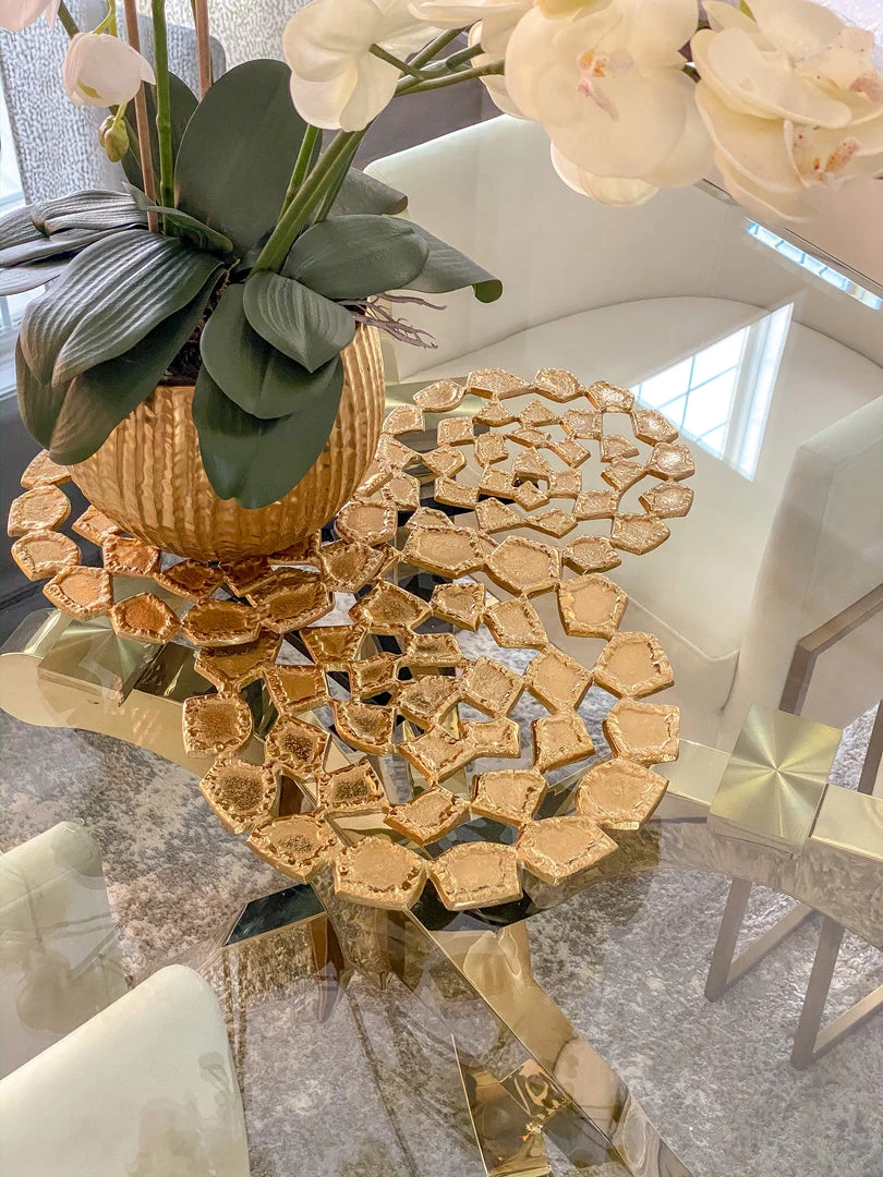 Description: Enjoy a sense of stunning texture and pattern with this beautiful wall art! This stunning gold piece features brilliant textures and patterns on each detailed piece.