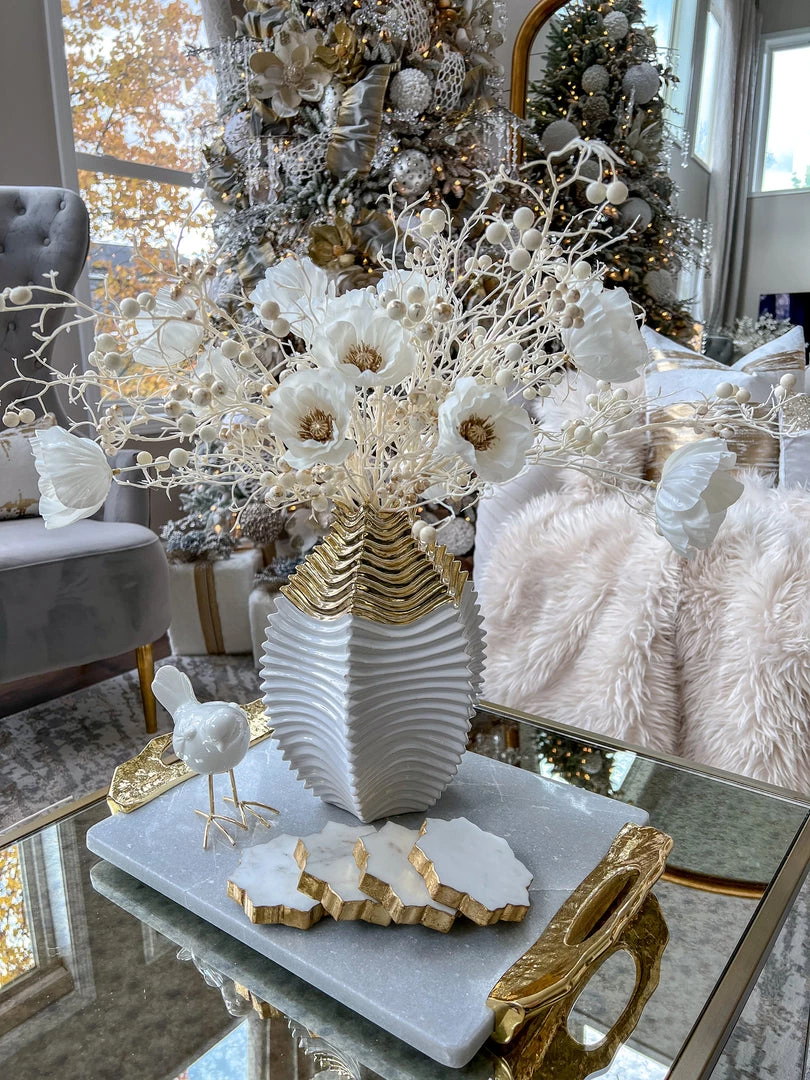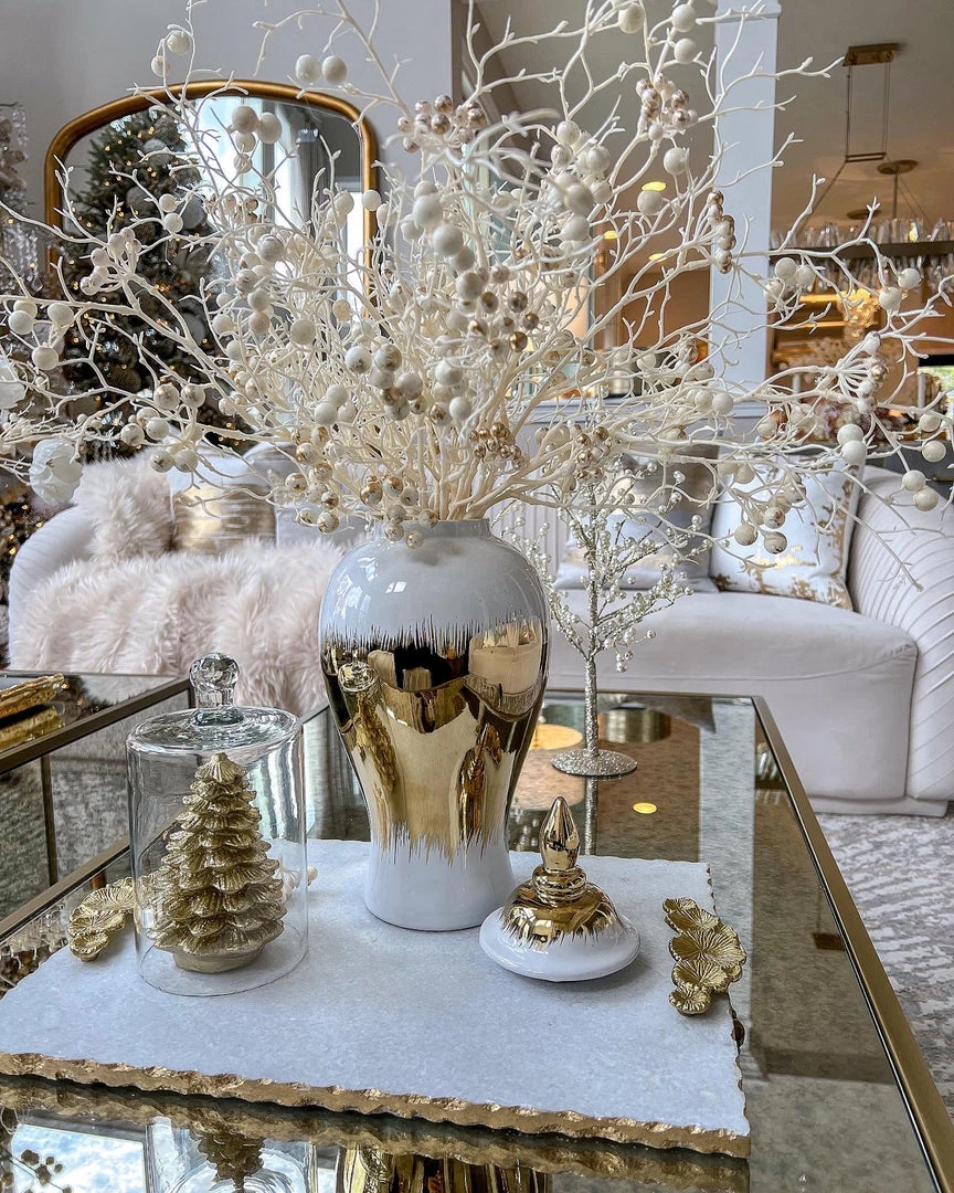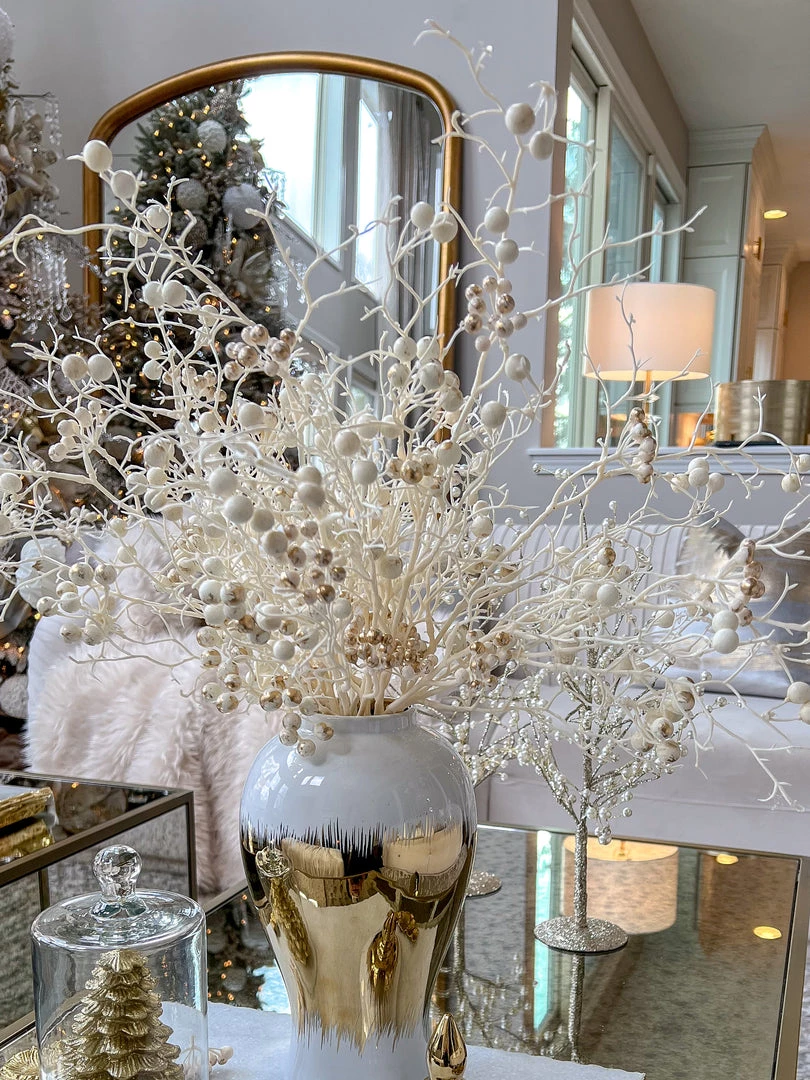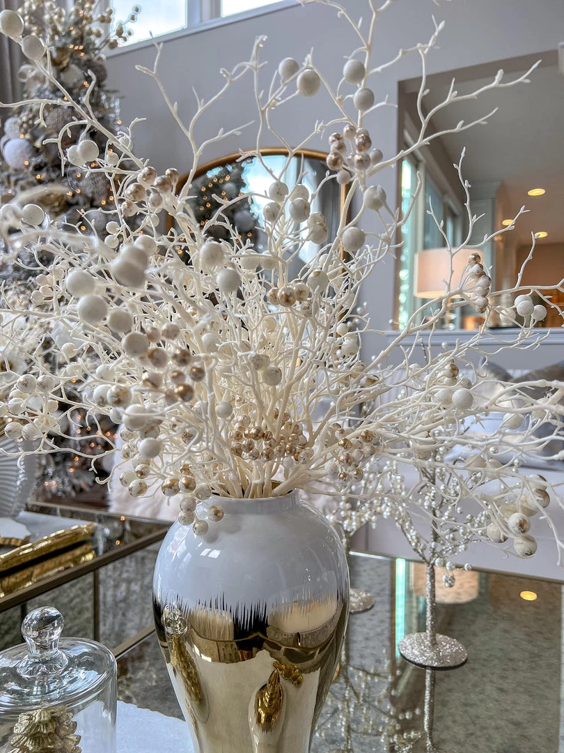 Description: This white and gold berry stem is perfect to style on its own, or to bring some texture to your other florals!