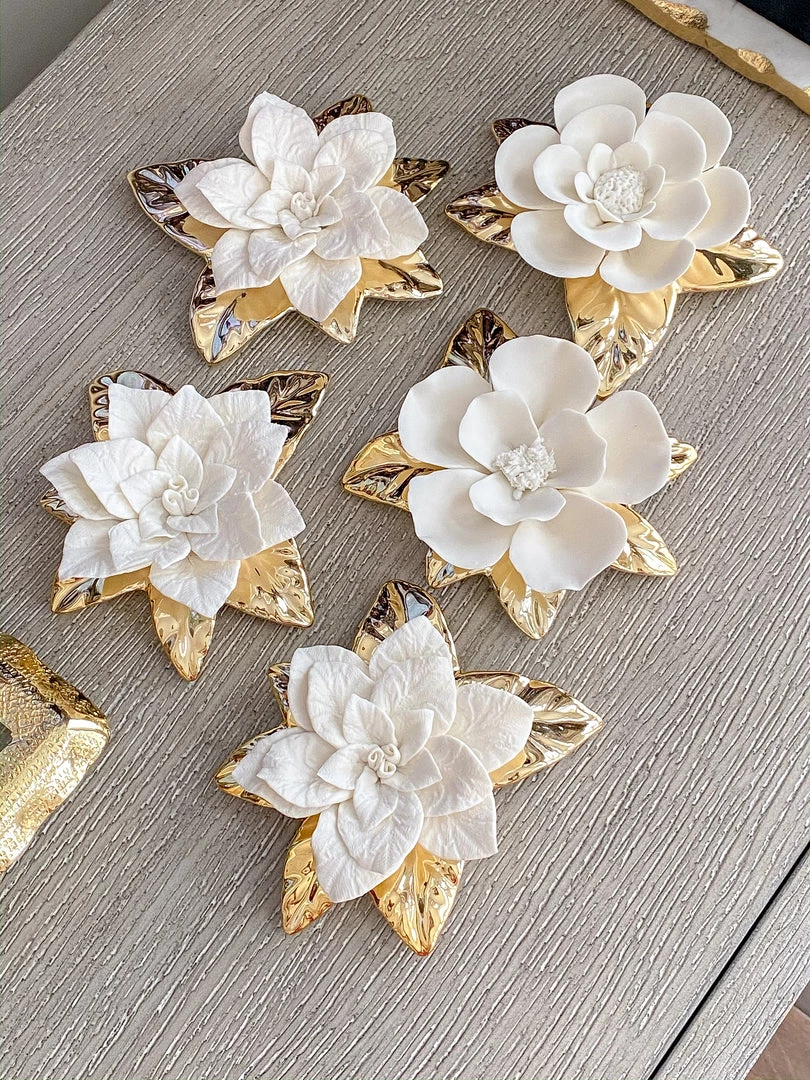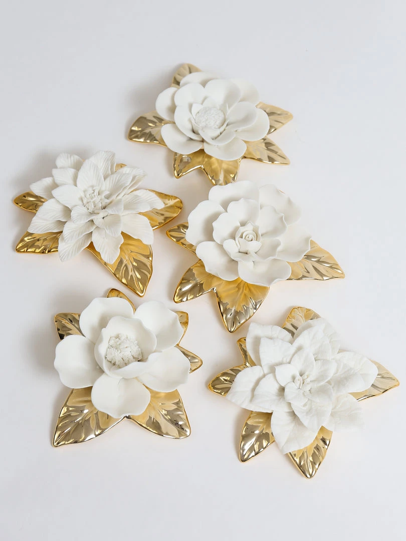 Description: Enjoy the beauty of nature with an extra elegant touch. These delicate porcelain flowers are able to be hung on the wall, or sit on a tabletop display.
