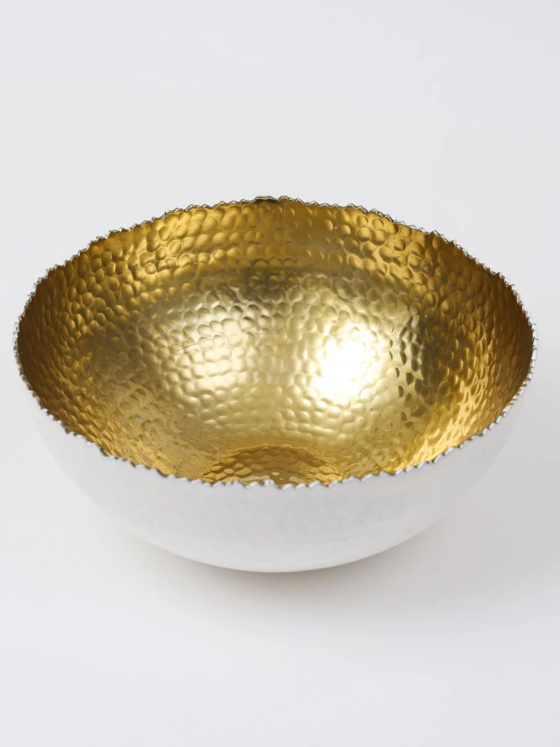 Description: This gold and white salad bowl has an uneven edge, a textured interior and exterior and will make your tablescape simply stunning.