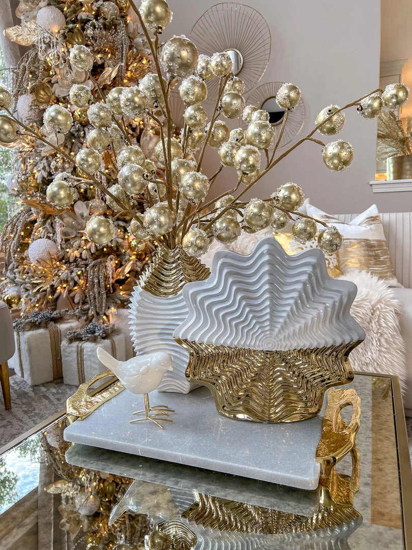 Description: This half white and gold vase is perfect for everyday florals! The white allows any color florals to pop while adding a touch of gold. Elevate your space with this vase!