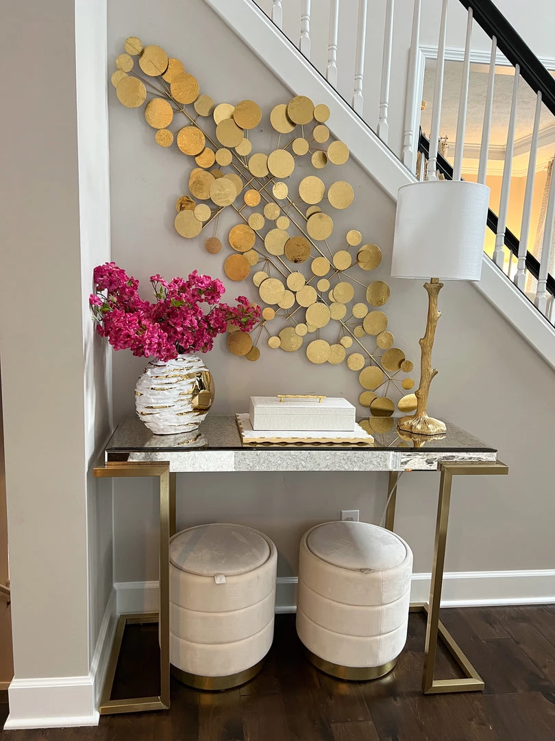 Inspire Me! Home Decor Round Marble Tray With Gold Edge And Metal Details