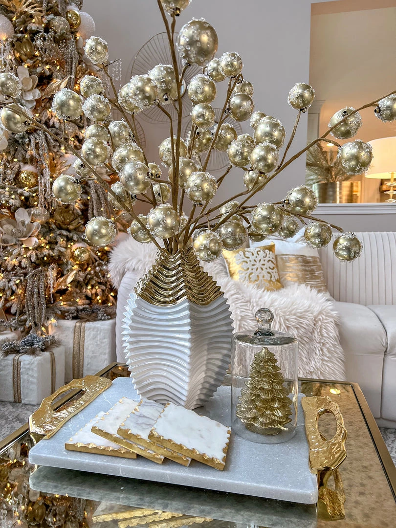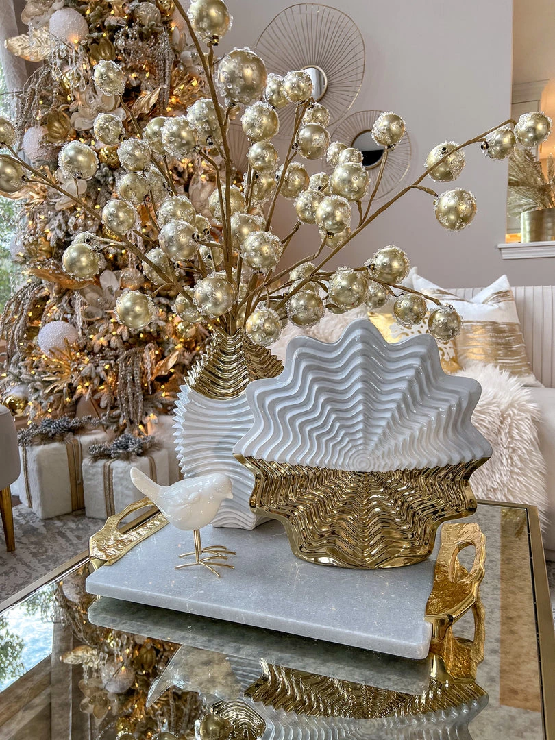 Description: This gold top and white base is a must have! Style it on any tray or shelf for a timeless look. The ridged outside will bring texture to any room.