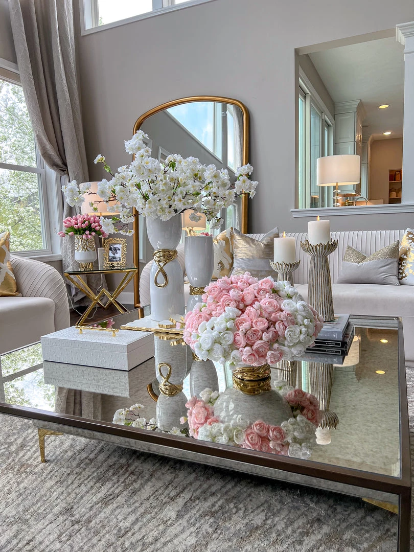 Inspire Me! Home Decor Large Rectangular Glass Tray With Cherry Blossom Details
