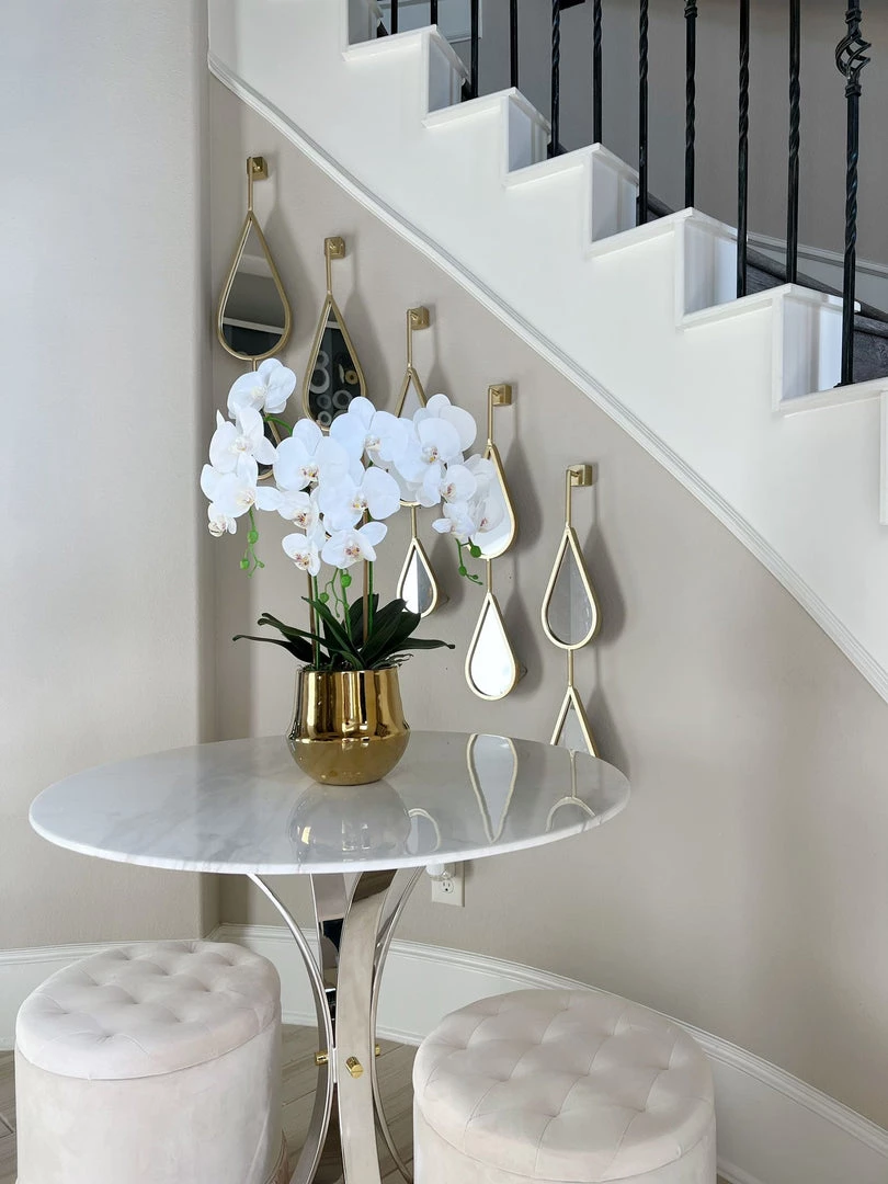 Description: This gold potted faux white Orchid is perfect for every season’s decor! The size is perfect for placing anywhere around your home!