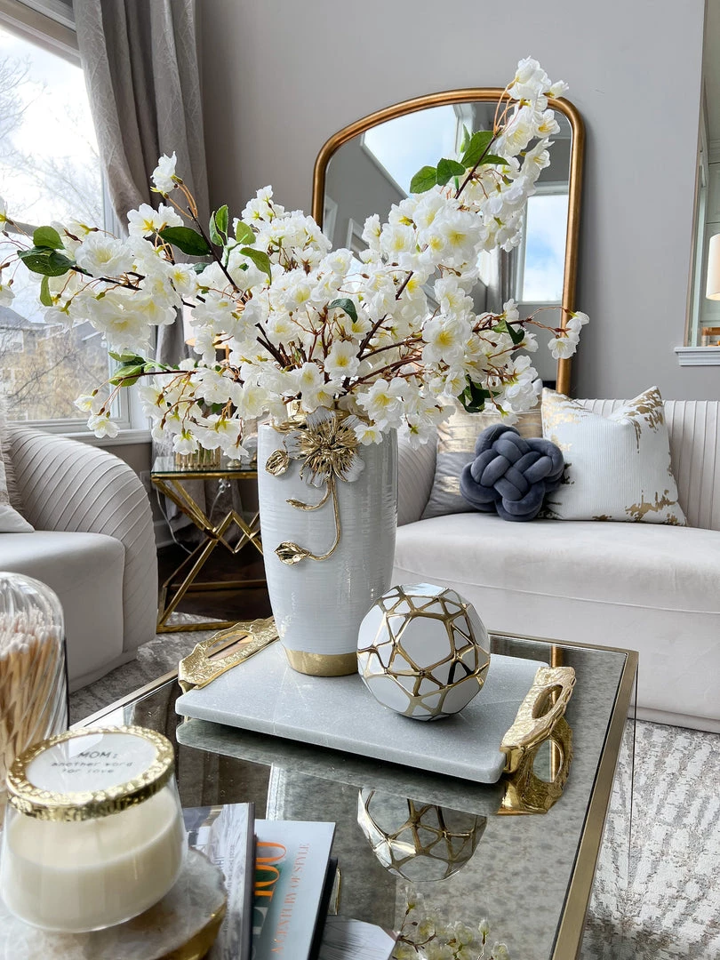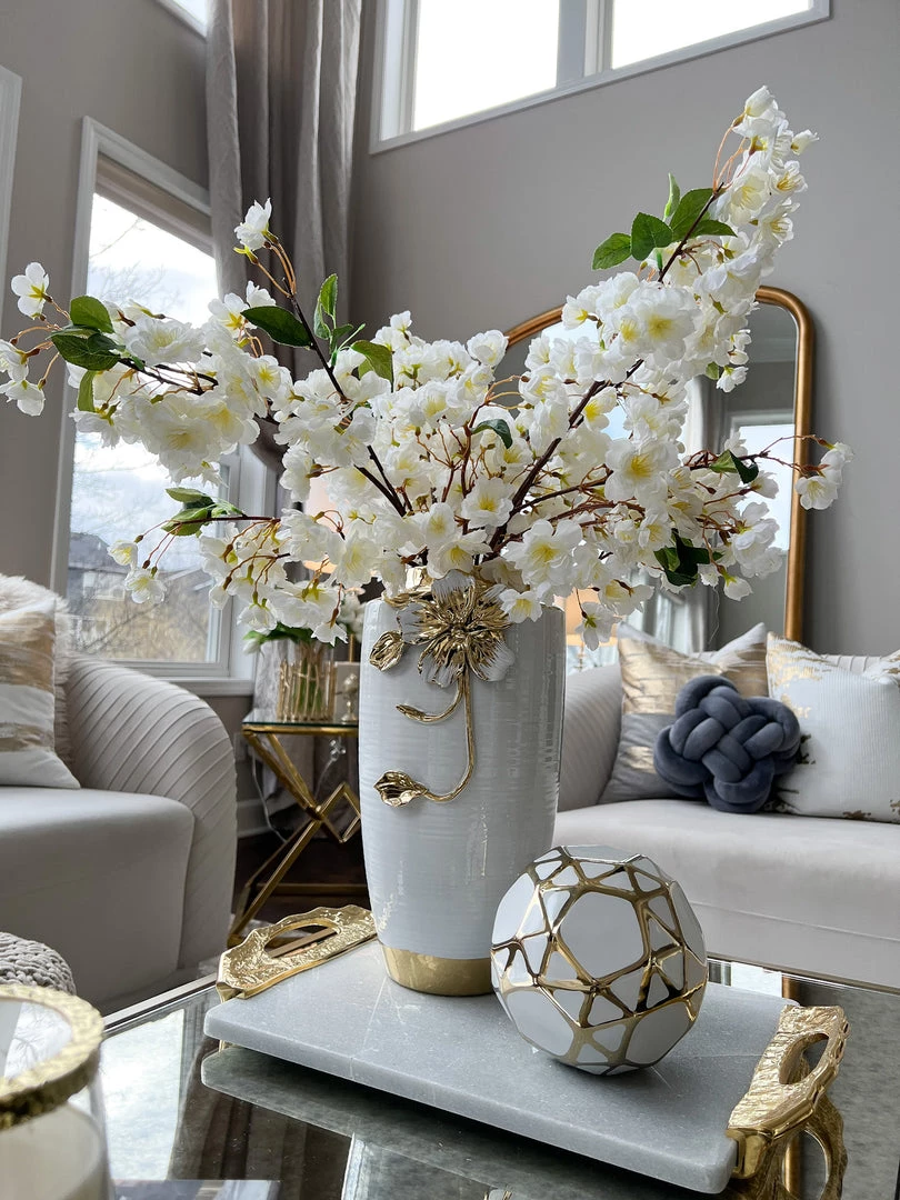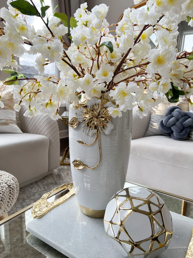Inspire Me! Home Decor White Ceramic Vase With Stunning Gold Floral Detailed Center