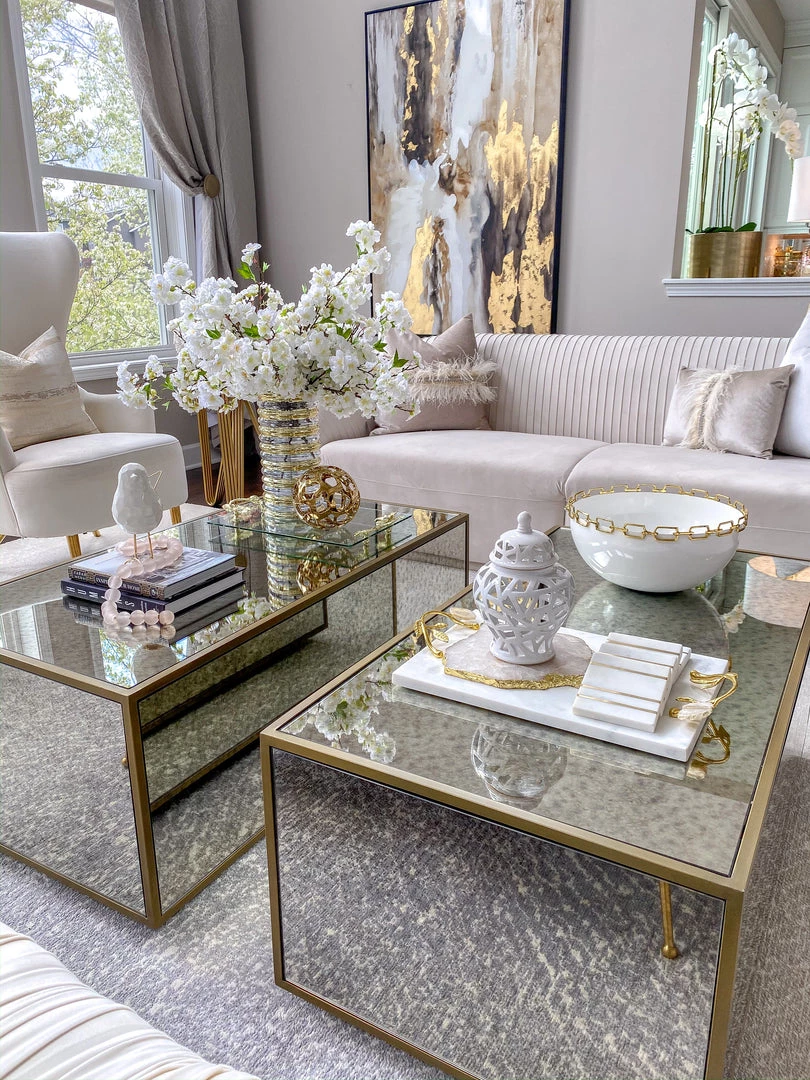 Inspire Me! Home Decor Gold Branch Centerpiece With 2 Glass Crackled Bowls