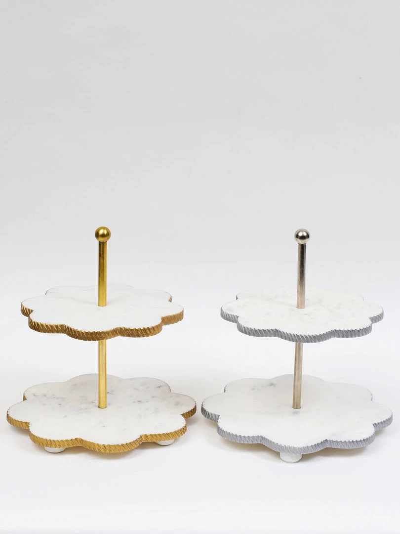 Description: These marble flower-shaped cake stands are so versatile! Use these on your coffee station for your mugs or to serve yummy desserts!
