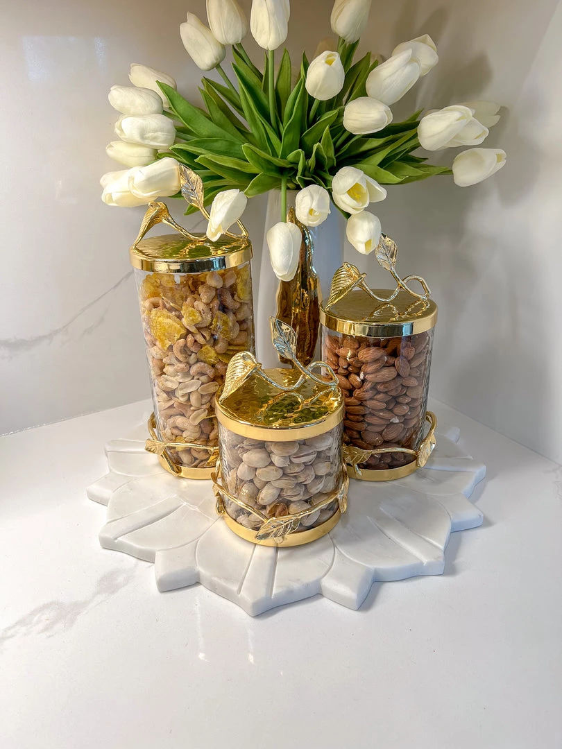 Description: This beautiful lotus marble tray is a base for your home decor! The stylized edges and unique lotus shape make this a one-of-a-kind piece!