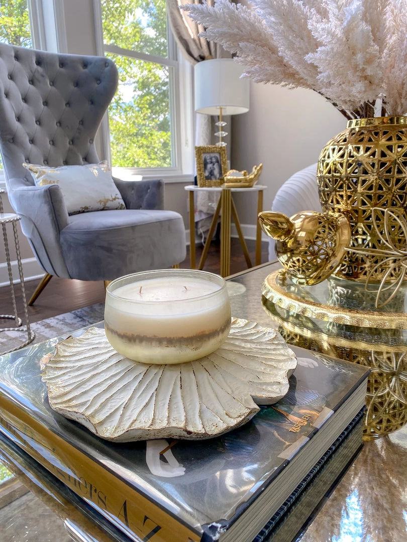 Inspire Me! Home Decor White Ceramic Candle Holder With Gold Elegant Details (2 Sizes)